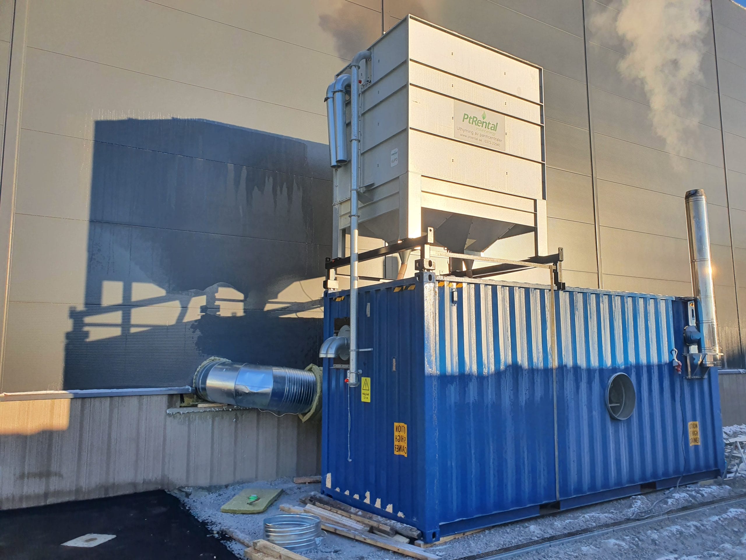Byggfirma från Lekeryd väljer att anlita PtRental för byggvärme under vinterhalvåret. Vi står för drift, skötsel och påfyllning av bränsle och vår kund betalar endast för den energi de förbrukar. Denna kund valde en varmluftspanna som innebär att man direkt från vår container blåser varmluft in i fastigheten. Vi har även lösningar för vattenburna system där vi bygger upp en tillfällig radiatorkrets eller kopplar upp oss på befintlig radiatorkrets. Vår kunds behöver endast ställa in önskad rumstemperatur på termostaten, vi sköter resten!