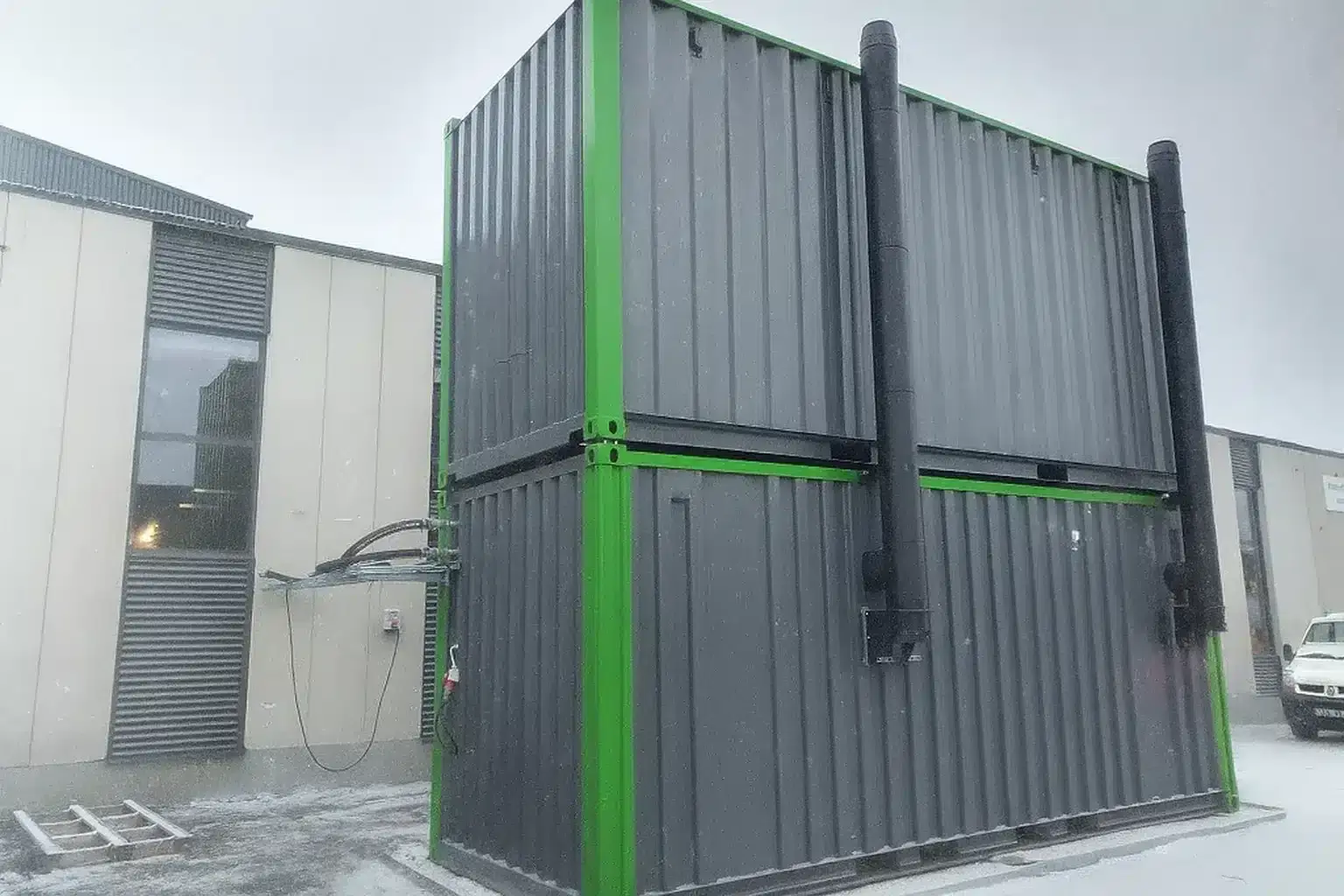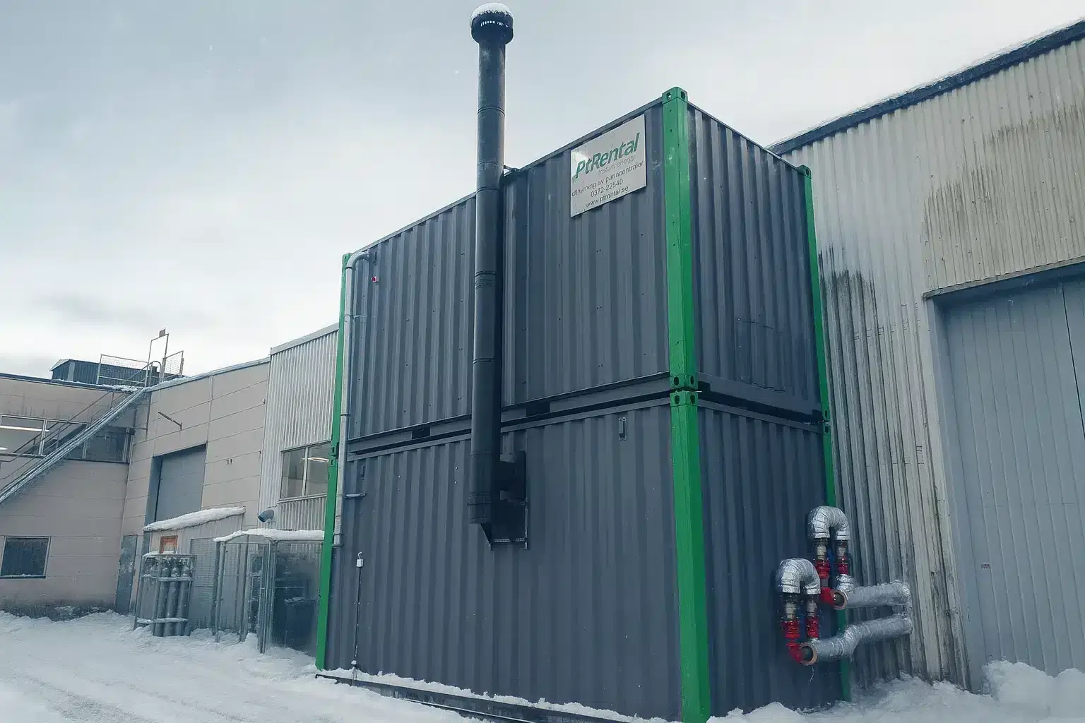• Containerbaserad pelletseldad panncentral ansluten till er fastighet eller byggprojekt