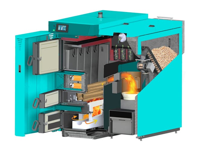 Kombipanna pellets och ved 25-45 kW