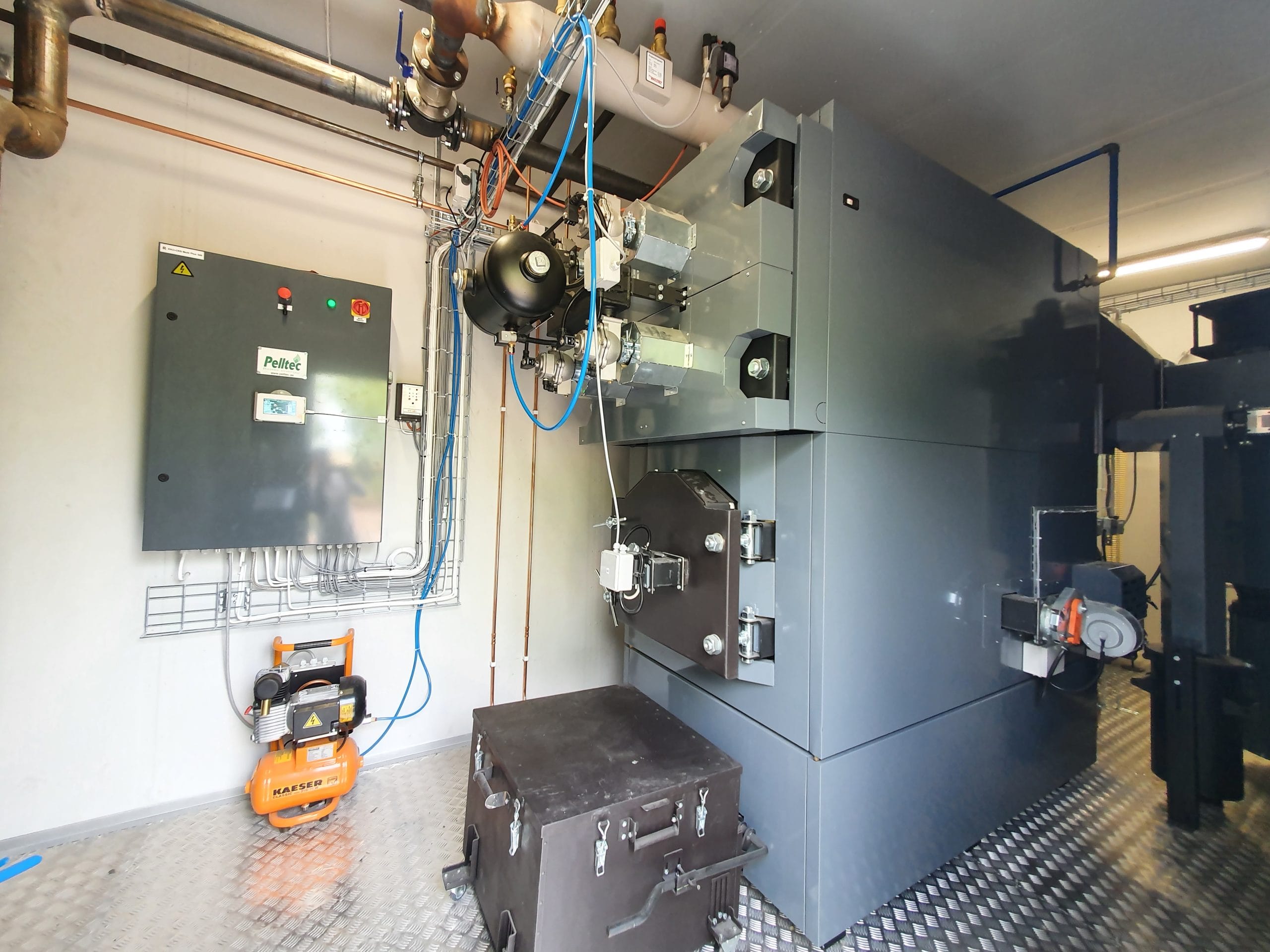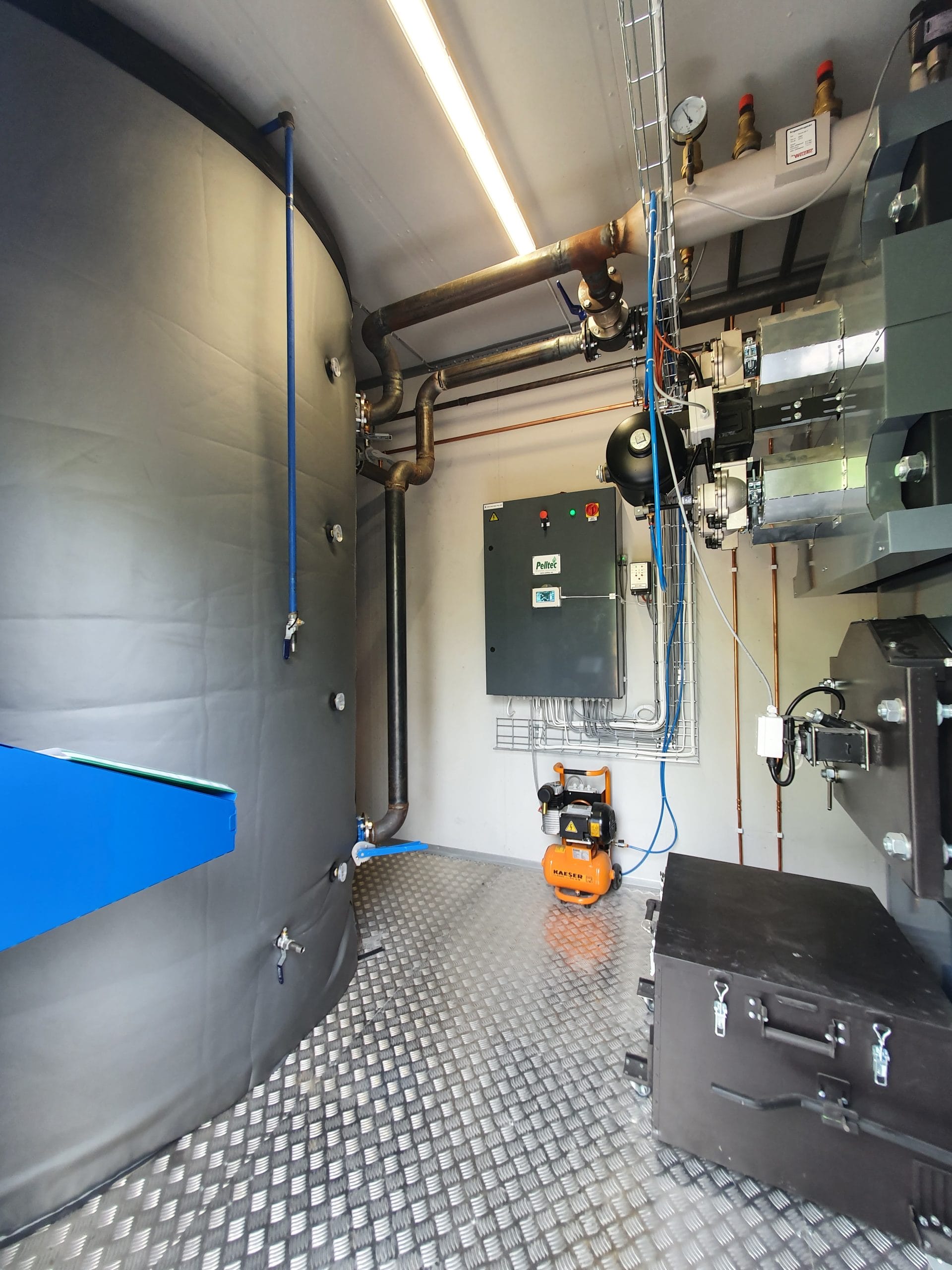 Plug and play lösning installerat och klart i ett mobilt pannhus.