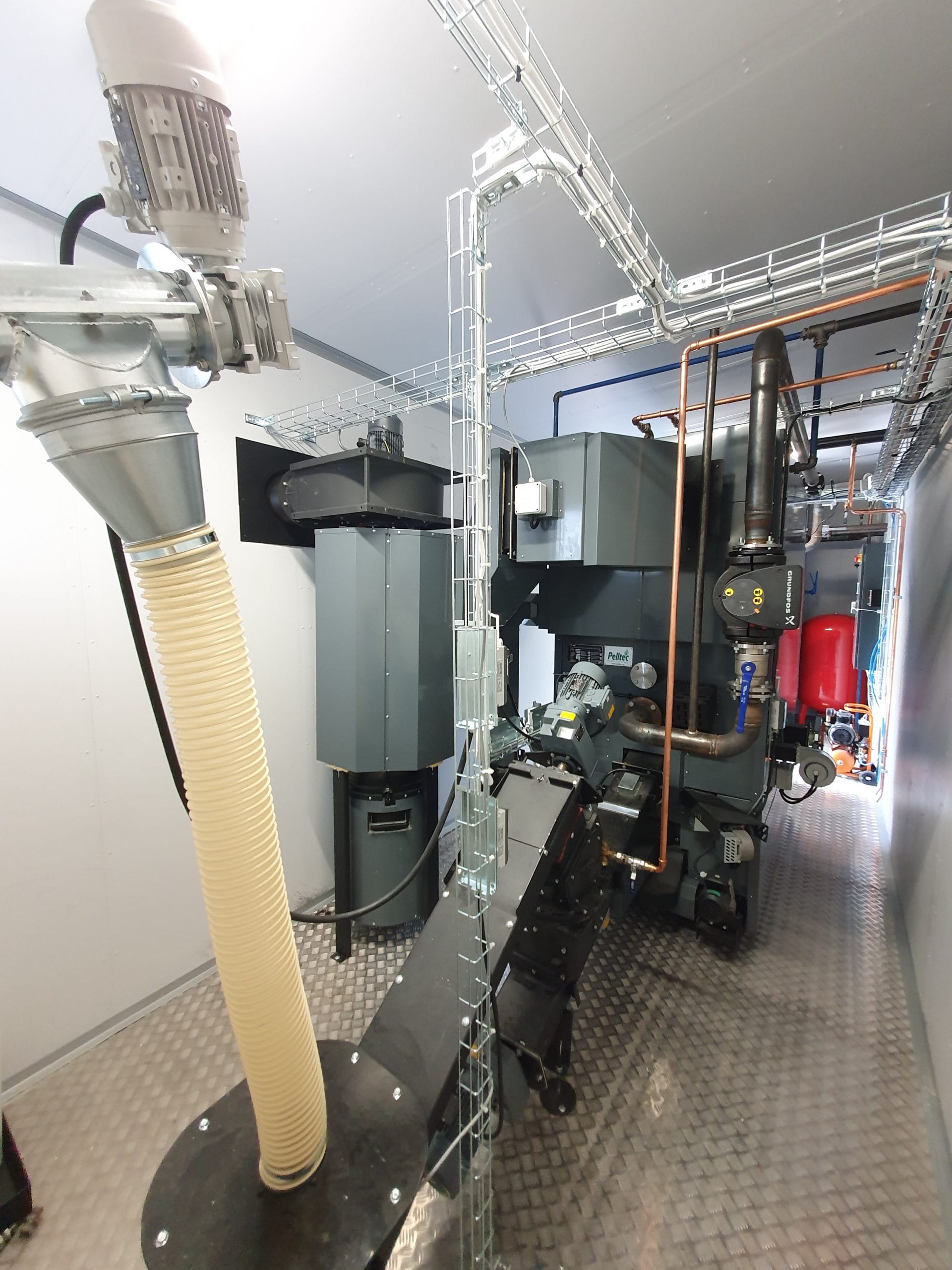 Pelltec panncentral 170-1160 kW är en komplett panncentral med ett externt pelletsförråd. Panncentralen innehåller alla nödvändiga komponenter för att producera pellets eller flisvärme och alla komponenter är monterade och testade vid leverans. Värmecentralen innehåller automatsotade pannor som är klassificerade enligt den högsta Europeiska standarden, EN 303-5:2012 (Klass 5) vilket innebär mycket låga utsläpp samt en hög verkningsgrad.